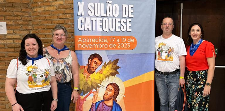 O encontro reúne representações das arqui/dioceses dos Regionais do Sul do Brasil. Nossa Arquidiocese está representada pelo Pe. Alcione Carvalho da Silva, pároco de Pinhal Grande, pela Secretária de Pastoral, Daniele Irassochio, e pelas catequistas Cristiane Rubin e Juliana Cauduro.