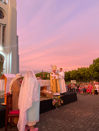 A celebração iniciou às 19h e foi realizada de forma campal, em frente à Igreja. Cerca de 500 pessoas acompanharam a Missa, que contou com a presença dos integrantes da Fazenda Terapêutica do Senhor Jesus e suas famílias, além dos moradores locais, comunidades vizinhas e fiéis de outras paróquias e cidades da região.